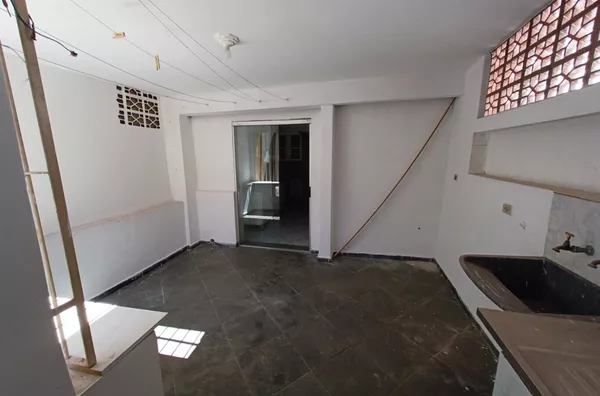 O imóvel térreo, tem 1 quarto, sala, cozinha, banheiro e área de serviço.