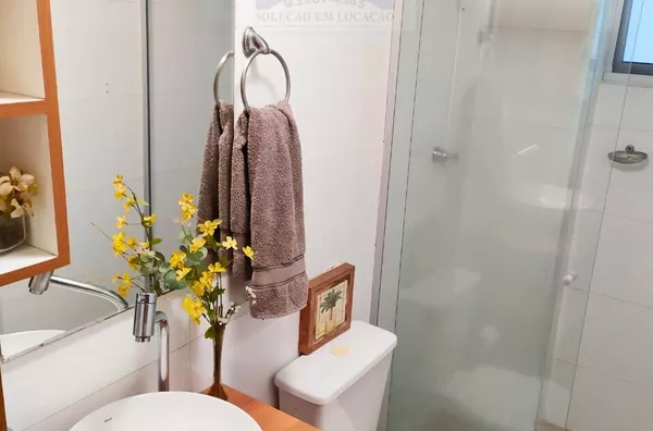 Cozinha e banheiro com móveis planejados
