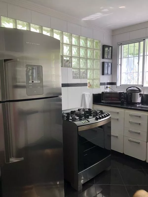 sobrado completo, finamente decorado, com 3 dormitórios ricos em armários, sendo um deles suíte, piso laminado, sala ampla com dois ambientes espelhada, linda cozinha planejada e bastante ampla, corredor lateral, área de serviço, lavanderia, dependência de empregada, churrasqueira no espaço gourmet, 3 vagas de garagem com portão automático, lavabo e 4 banheiros. área construida: 260 m². valor da venda: r$850.000,00. estuda proposta.